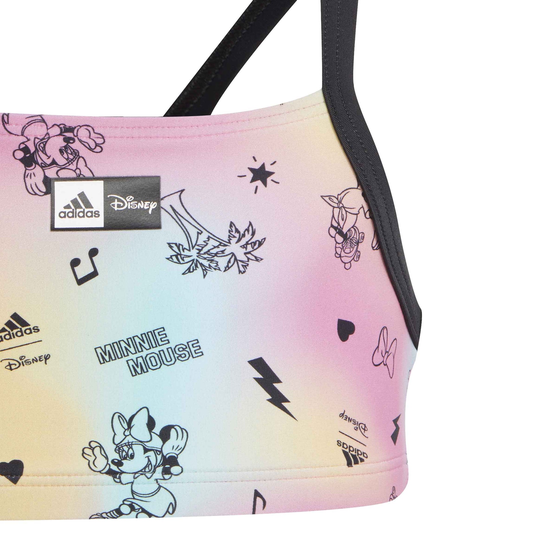 Dettagli Iconici: Il set integra i simboli classici di adidas (come il logo Badge of Sport) con l'estetica giocosa di Minnie, creando un look unico e riconoscibile.