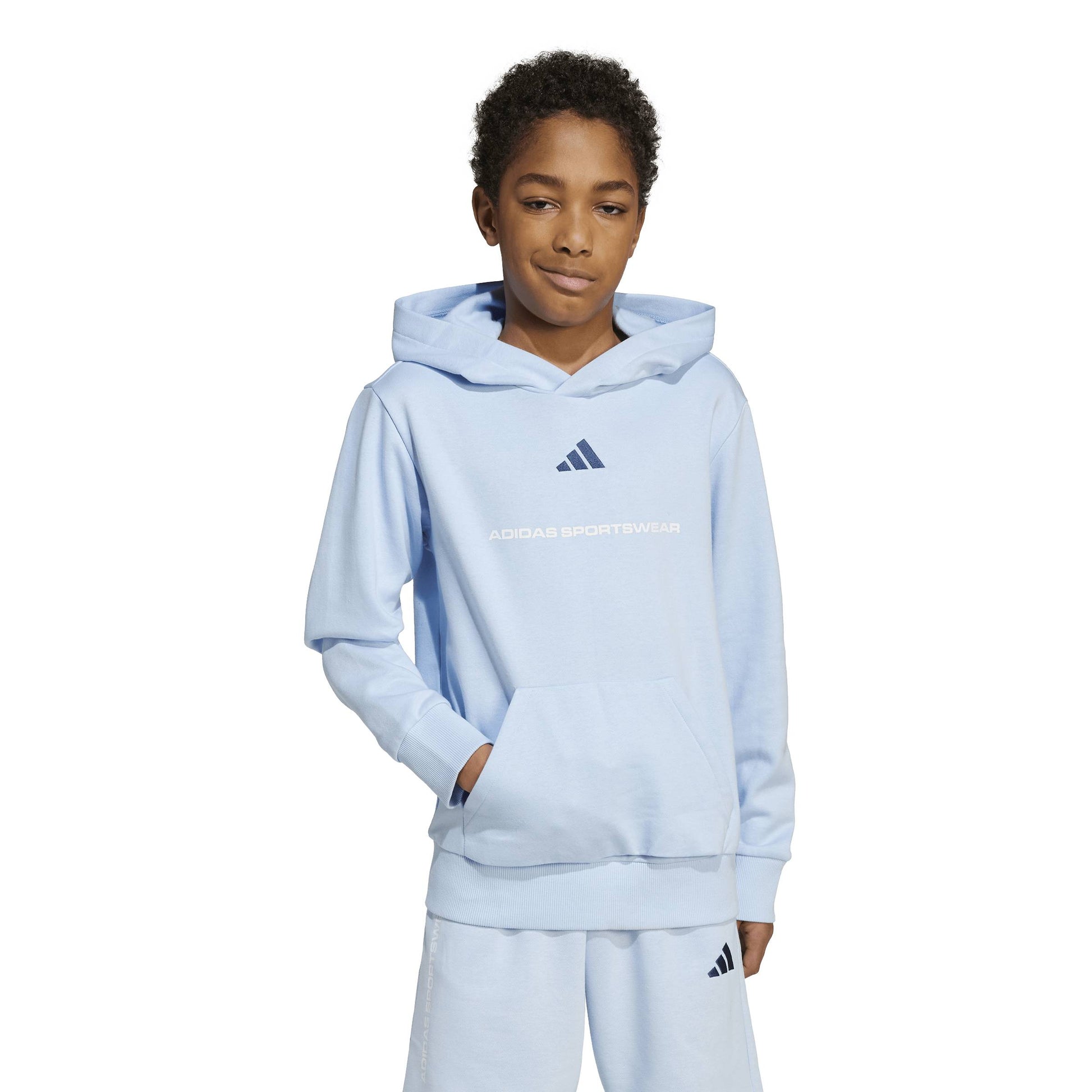 Affronta le giornate più fresche con lo stile vibrante di questa felpa con cappuccio adidas. Caratterizzata da una tonalità di blu luminosa e moderna, questa felpa combina un look sportivo essenziale con la massima praticità. Il design pulito, impreziosito dal logo adidas a contrasto sul petto, la rende perfetta per essere indossata sopra la divisa scolastica o come strato caldo durante gli allenamenti all'aperto.