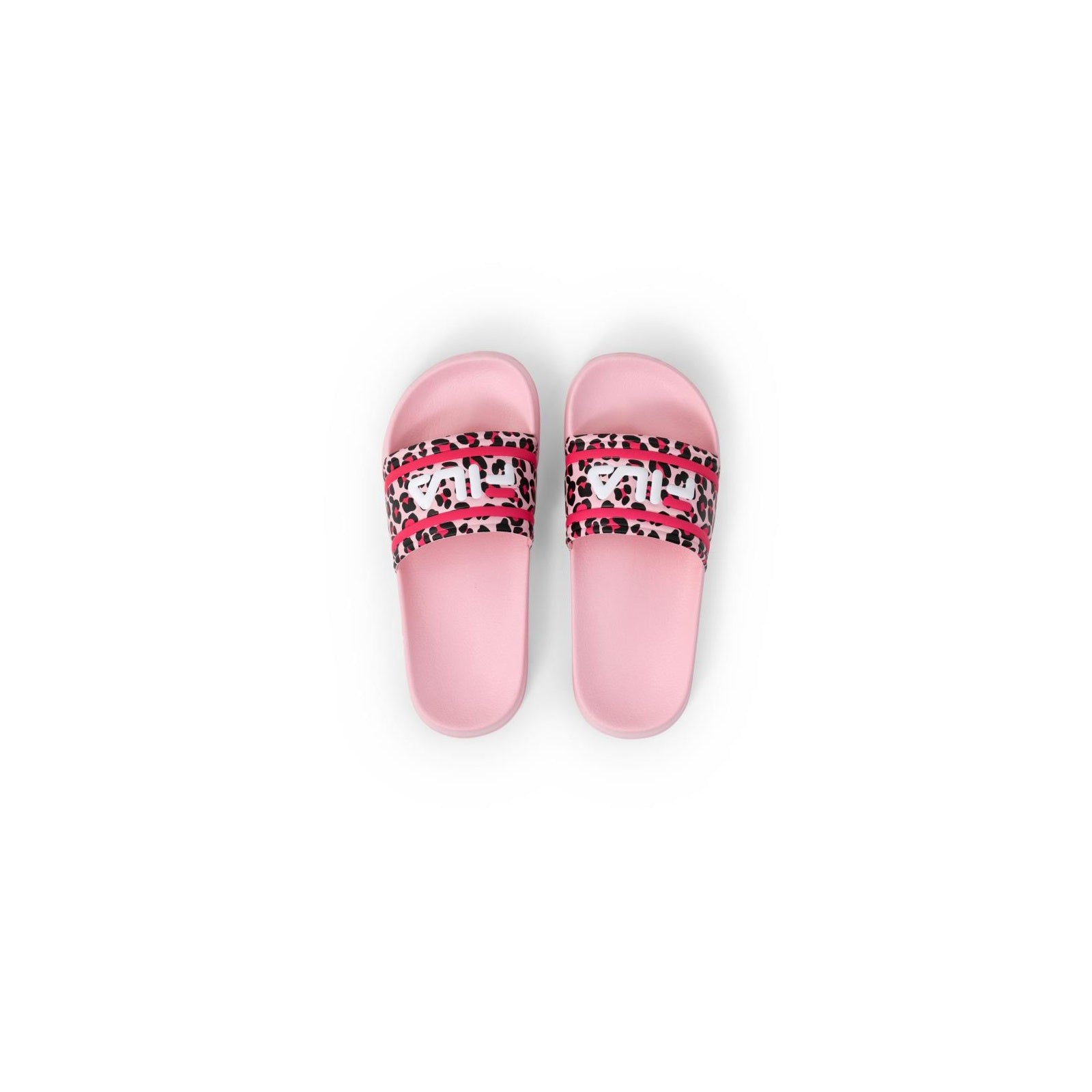 Eleganti ciabatte Fila rosa con cinturino largo e stampa leopardata in nero e rosa, due strisce e un grande logo. Le ciabatte Fila hanno un cinturino largo sul collo del piede. All'interno dei cinturini è presente uno strato di tessuto morbido, che rende le ciabatte particolarmente comode. Le solette interne hanno una forma ergonomica, che offre un buon supporto. Le suole esterne sono flessibili e presentano un battistrada sotto la suola, che garantisce un appoggio sicuro. Le ciabatte sono realizzate in materiale leggero.