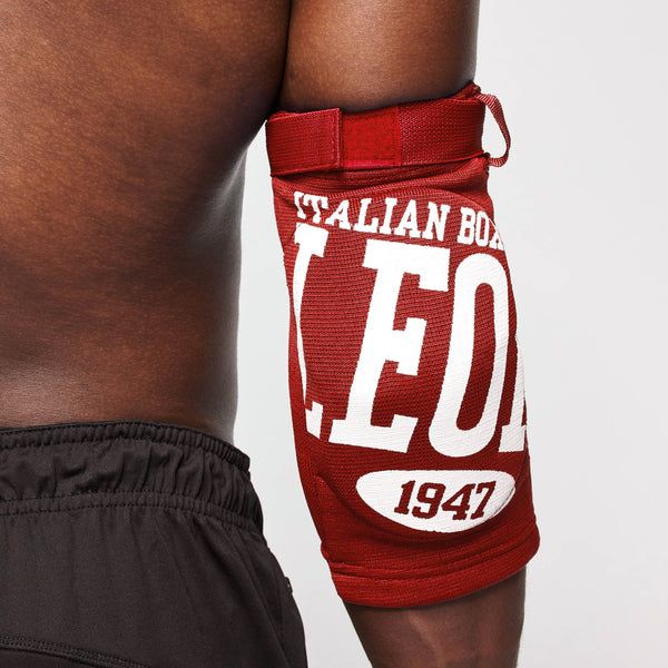 Proteggi le tue articolazioni con le protezioni Leone PR327 Rosse. Design tubolare elastico per gomiti o ginocchia. Ideali per Muay Thai, MMA e Grappling.