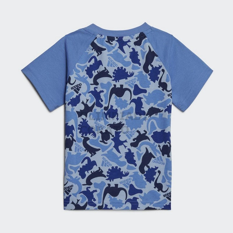 Completo tuta Adidas blun da bambino Set Blufus/Bludaw HR5875. Questo completo Adidas blu ha la T-Shirt girocollo a maniche corte, la stampa del brand centrale sul davanti, la fantasia con dinosauri all over ed il fondo regolare. I bermuda di questo completo tuta Adidas hanno le leggendarie 3Stripes laterali a contrasto colore, la banda elastica sul punto vita regolabile con laccetti ed il fondo regolare.Questo completo tuta Adidas da bambino è realizzato in puro cotone 100%.