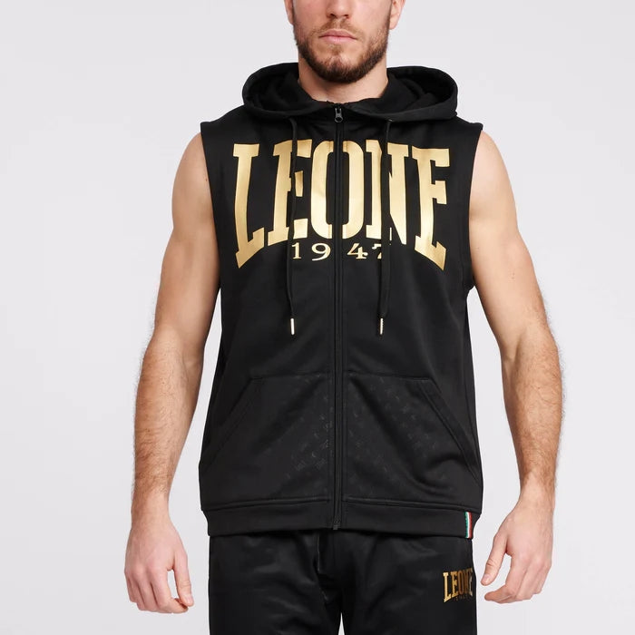 Materiale: PoliestereColore: neroSMANICATO CON CAPPUCCIO DNA LEONE ABX710-NEROLo smanicato con cappuccio DNA rappresenta a pieno il marchio Leone 1947. Particolarmente di impatto i grandi loghi dorati su leggero tessuto in poliestere.Smanicato con cappuccio con tasche.Inserti stampati in oro.Comoda e pratica per l’allenamento.