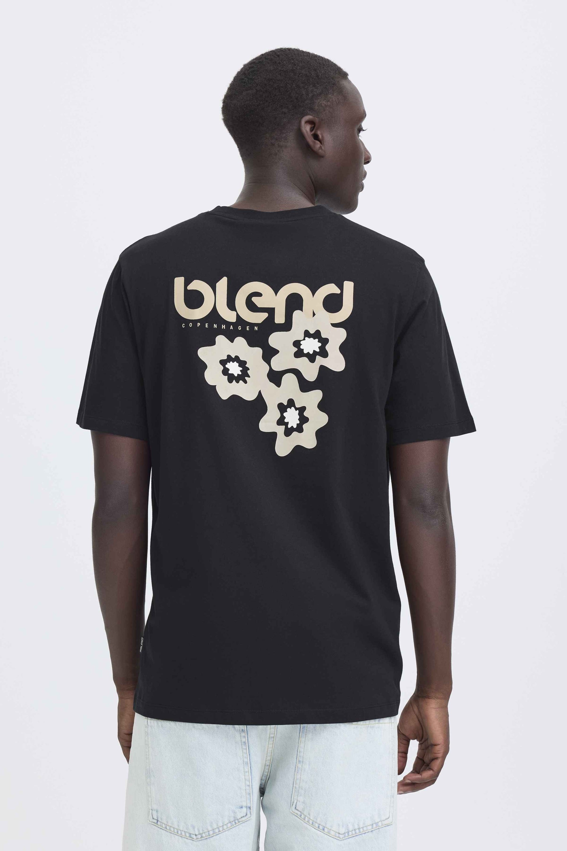 La T-shirt Blend He BHEMMET PRINT (cod. 20720327-900003398) nella colorazione Nera รจ il perfetto equilibrio tra sobrietร frontale e audacia posteriore. La base scura trasforma la maxi grafica botanica sulla schiena in un vero punto focale luminoso, rendendo questa maglietta un pezzo forte della collezione Blend He.
