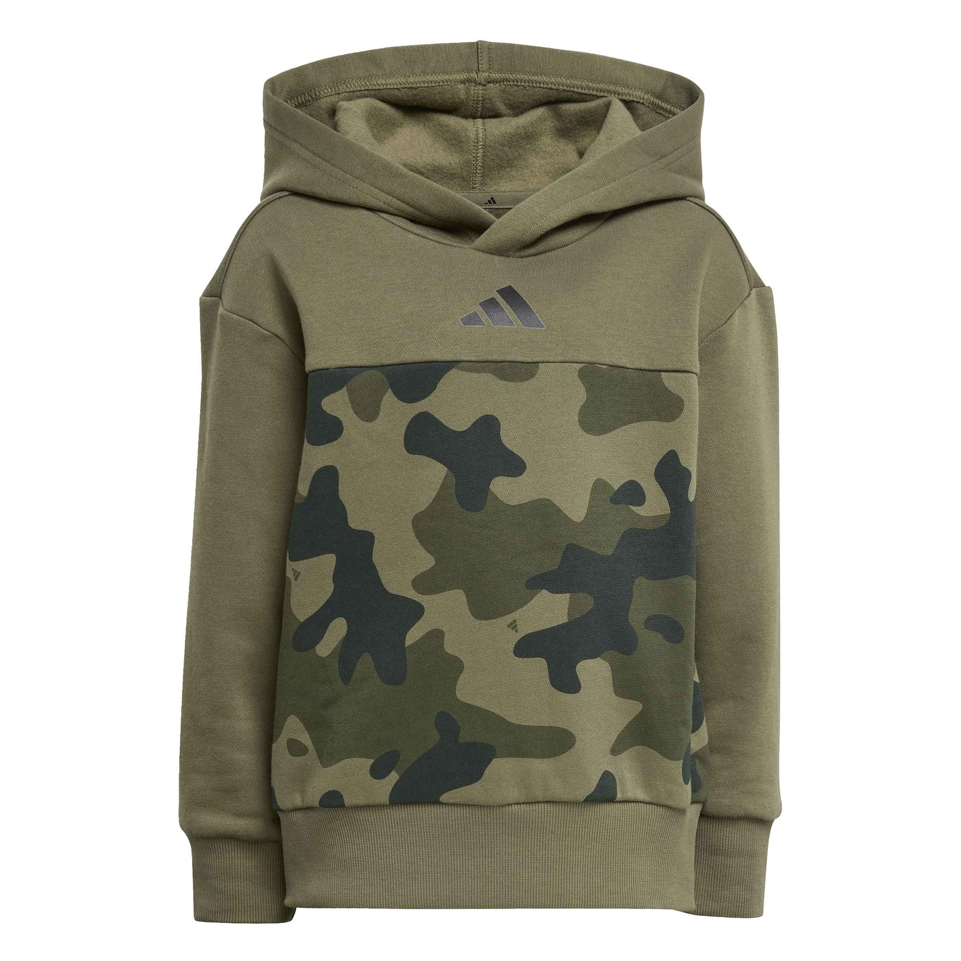 Prepara il tuo piccolo esploratore all'avventura con questo set adidas caratterizzato da un moderno look camouflage. Il completo abbina una felpa con cappuccio e pantaloni coordinati, entrambi decorati con una grafica mimetica dinamica e le iconiche 3 strisce laterali. Pensato per il gioco e il movimento, questo set offre uno stile streetwear grintoso senza rinunciare alla morbidezza necessaria per le attività quotidiane.