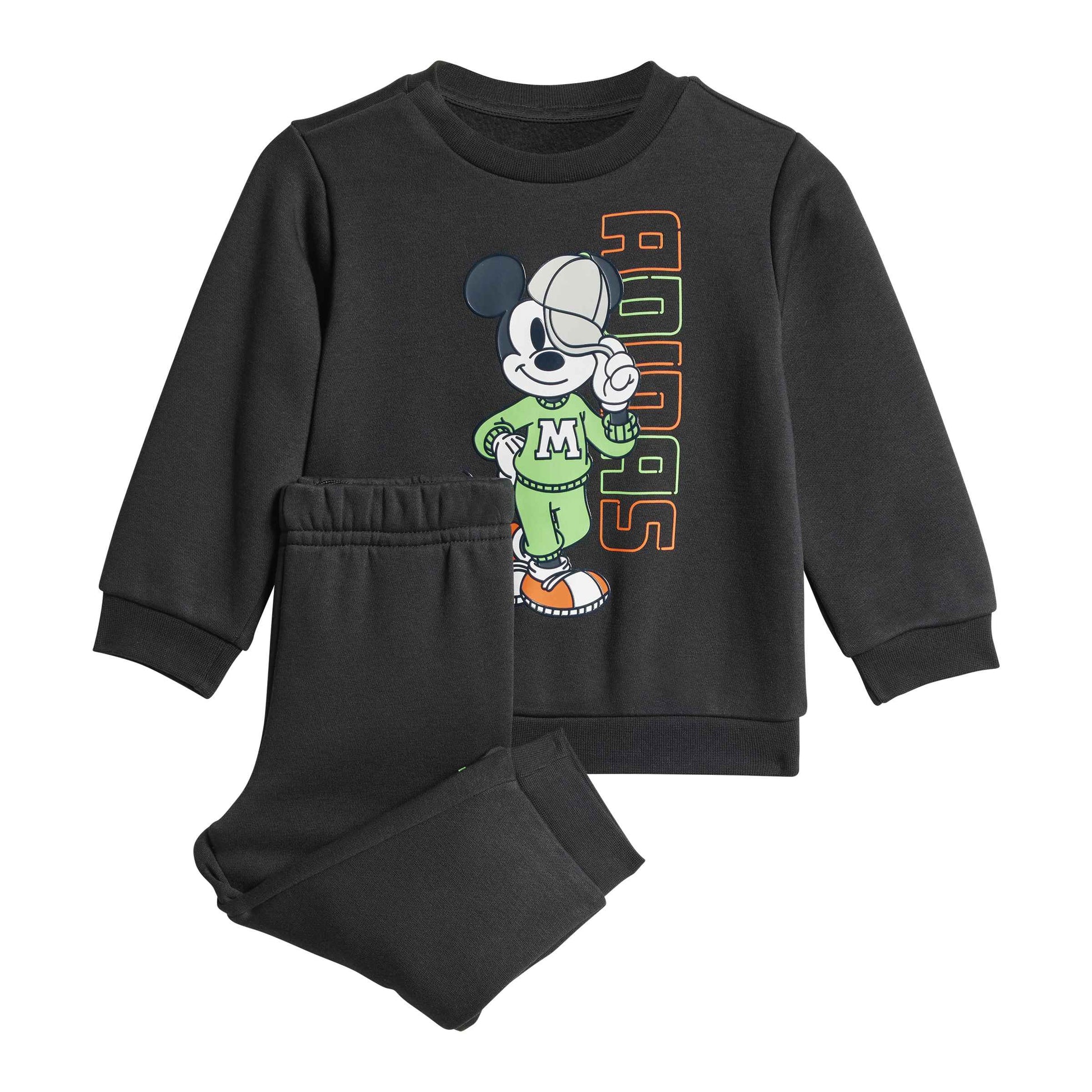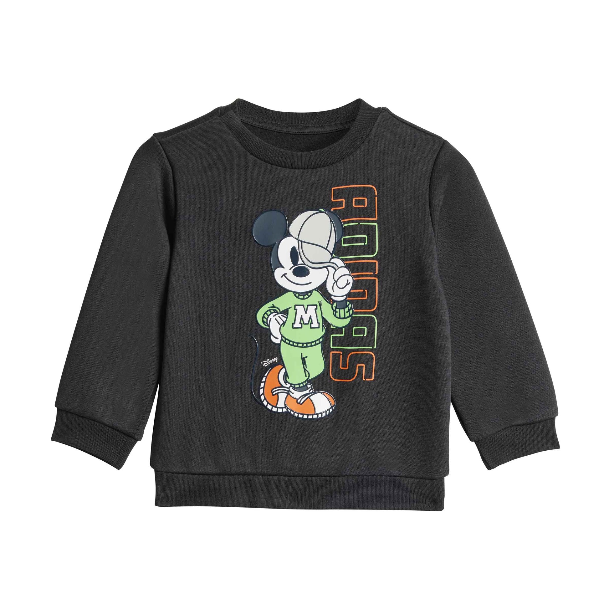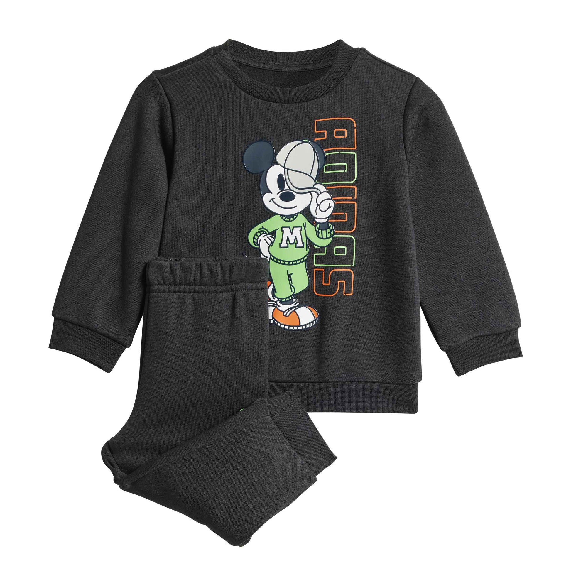 Dettagli: Grafiche Disney Mickey Mouse applicate, logo adidas Badge of Sport, finiture a coste.