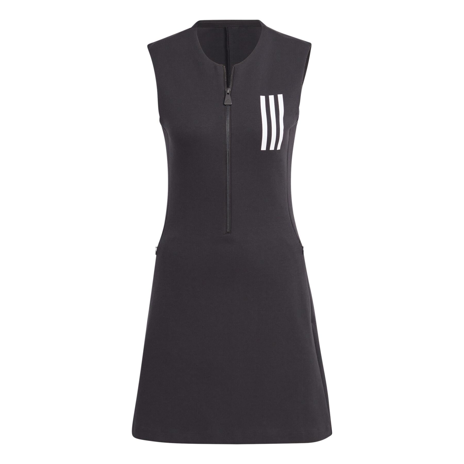 Affronta la giornata con fiducia. Questo abito senza maniche adidas ha una vestibilità avvolgente per un look aderente. Vestiti per una serata speciale o rilassati a casa mentre vai in giro per i tuoi affari. Una cerniera frontale lo rende facile da indossare e togliere. Le tasche laterali consentono di riporre piccoli elementi essenziali.Il 70% minimo di questo prodotto è una miscela di materiali riciclati e rinnovabili. Vestibilità slim